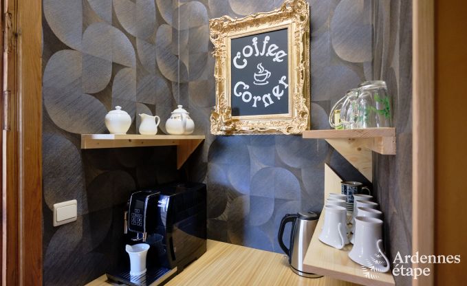 Une pépite dans notre village préféré Hives. Le meilleur gîte (on en a fait beaucoup) dans lequel nous avons séjourné. Extrêmement pratique (grand sas d'entrée, sdb dans chaque chambre, et coup de coeur pour le Coffee Corner). Cuisine bien organisée, électros tous neufs (comme tout dans ce gîte). Vaste séjour, salle a manger juste a coté. Déco cosy. Et le top du top, c'est la vue magnifique à contempler sans limite, couchés sur les bancs/canapés le long d'une immense fenêtre. La Roche a 4kms.