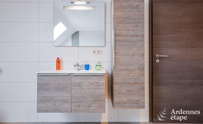 In diesem bezaubernden Ferienhaus können Sie sich mit Ihrer Familie in den grünen Weiten der belgischen Ardennen erholen. Schlafen Sie bis in die Puppen in einem der 4 geräumigen Schlafzimmer, genießen Sie köstliches Gebäck zum Frühstück (die Bäckerei ist gleich um die Ecke!), erkunden Sie die Wälder in der direkten Umgebung und tanken Sie viel Vitamin D. Lust auf ein Verwöhnprogramm? Genießen Sie die wohltuende Wärme der Sauna und lassen Sie die Seele baumeln. Die offene Küche, die in den Wohnraum übergeht, verspricht Momente absoluter Geselligkeit! Ihre Mitreisenden nehmen einen Aperitif am knisternden Feuer? Dann verwöhnen Sie ihren Gaumen mit köstlichen lokalen Gerichten. Die Kinder können sich bei Tischtennis, Darts oder Kicker austoben. Ist das Leben nicht schön?