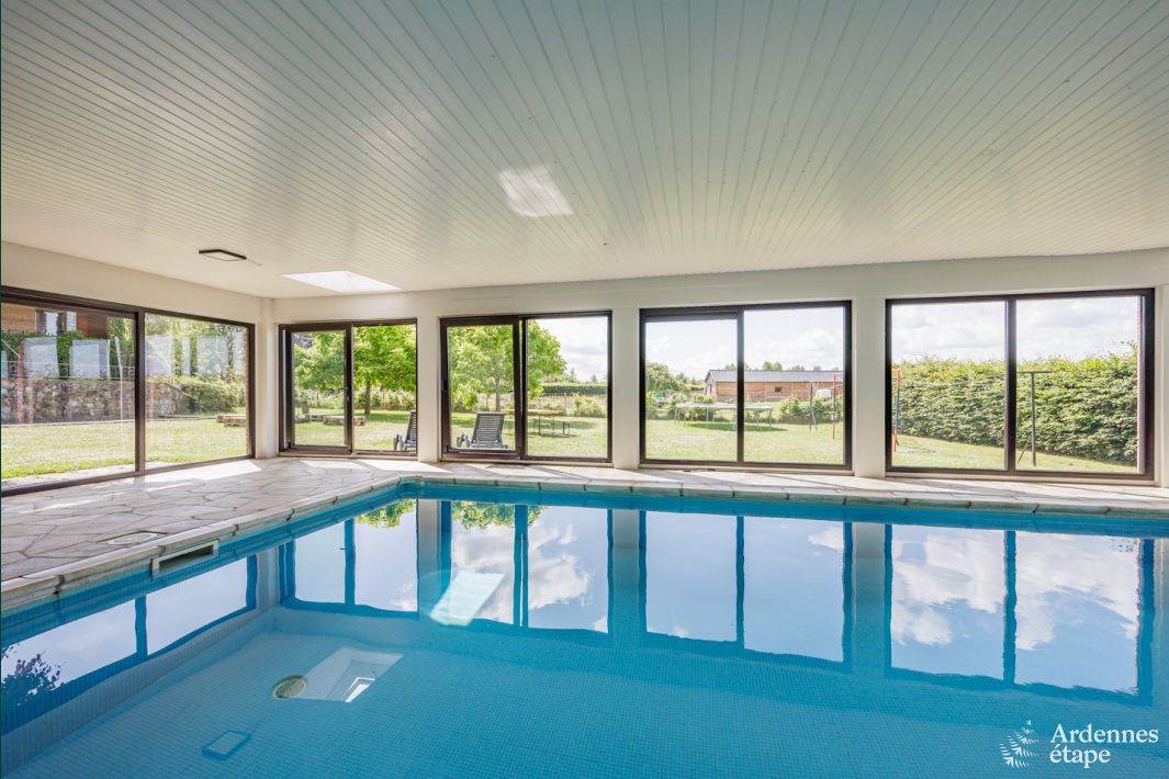 Een heerlijk weekje zomervakantie met kinderen en kleinkinderen (11 personen). Een heel comfortabele vakantiewoning met heel veel ruimte en prachtig uitzicht vanuit de living en het overdekt terras. Het overdekt terras is een pluspunt. Het binnenzwembad is een absolute troef voor de kinderen. De vakantiewoning is heel mooi gelegen in een rustige omgeving, ideale uitvalsbasis voor wandel- en fietstochten en uitstapjes in de mooie Ardense omgeving. We hebben er echt van genoten!