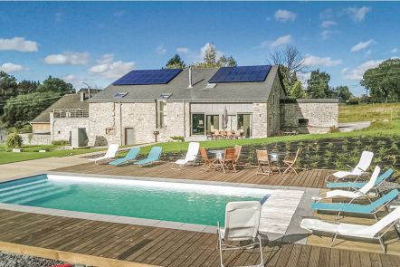 Genießen Sie diese Luxusvilla (5 Schlafzimmer, 5 Bäder) in abgeschiedener Lage, am Rande des Waldes. Whirlpool, skandinavisches Badefass und Fasssauna!