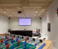 Hier werden Ihre Wünsche wahr! In diesem 4-Sterne-Ferienhaus für 12-14 Personen, in dem an alles gedacht wurde, werden Junge und Junggebliebene einen Traumurlaub verbringen. Wellnessbereich mit Sauna, Spielsaal mit Heimkino, wunderschöne Zimmer und vieles mehr!