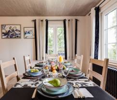 Nous avons passé un agréable séjour. Les chambres sont spacieuses. Le poêle dans le salon est un vrai atout malgré que le salon/salle à manger soit petit pour 6. Le jacuzzi est agréable mais petit et le saune est très bien même s'il est impossible de s'y allonger. La cuisine n'a aucun des éléments de base (sel, poivre, papier de toilette) . La maison est un peu légère dans sa construction mais bien située pour de belles balades.