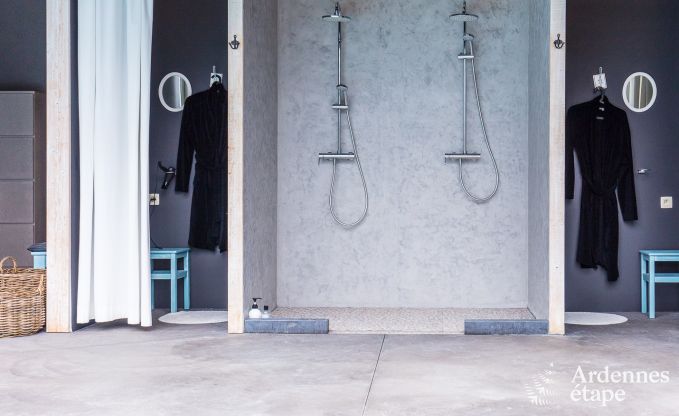 Die Wellnessoptionen sind äußerst praktisch und flexibel. Auf dem Programm: Kosmetikbehandlungen nach Wahl (Gesicht, Hände, Füße etc.), Duo-Behandlungen (sehr romantisch!), Wellnesscenter (mit Whirlpool, Hammam, Sauna), Friseursalon usw. Der Pool, der gemeinsam mit den Eigentümern und dem Zentrum genutzt wird, ist 7 Tage die Woche geöffnet (Montag bis Samstag 9:00-19:00 Uhr, Sonntag 10:00-12:00 Uhr, Badebekleidung ist Pflicht). Alle Leistungen sind Extras, die vor Ort zu zahlen sind (Zahlung mit Bancontact möglich). Für den Zugang zum Wellnessbereich: Festpreis pro Person und pro Aufenthalt. Denken Sie daran, rechtzeitig zu buchen!