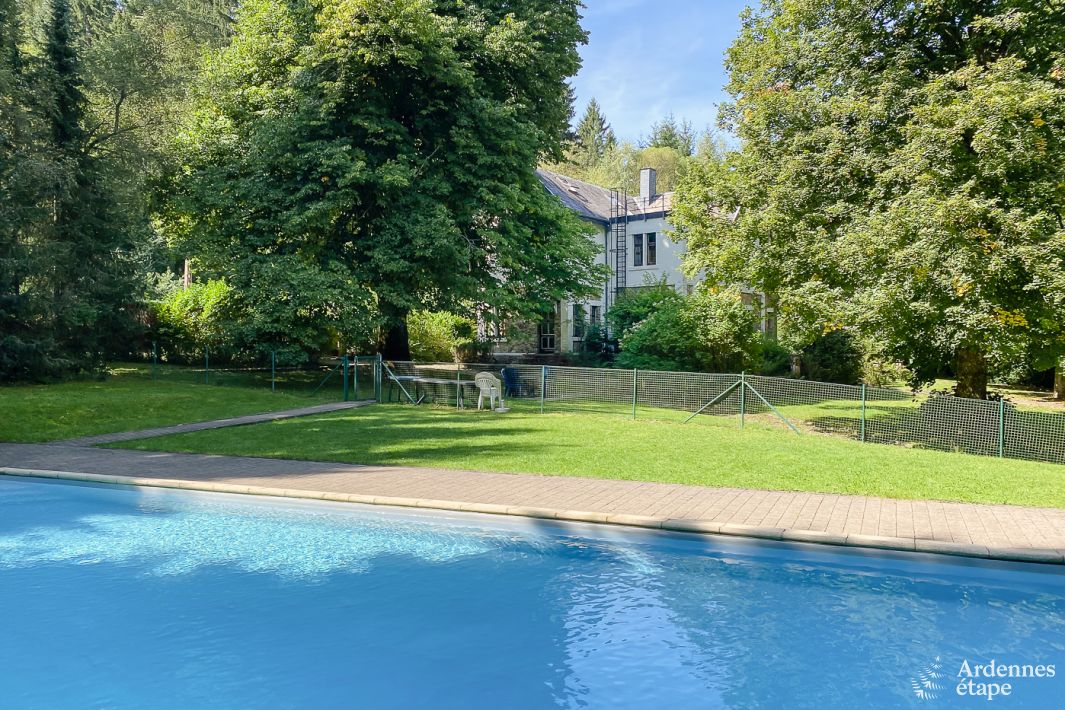 Ferienhaus mit 5 Schlafzimmern und 5 Badezimmern für einen tollen Gruppenaufenthalt in den Ardennen. Hunde sind erlaubt! Pool, Bouleplatz und schöner Garten! Das Licht, das durch die unzähligen Fenster fällt, das gemütliche Interieur mit seinen hellen Farben, die Natur, die in jedem Raum zu spüren ist… In diesem 1930 errichteten Ferienhaus mit Charakter werden Sie sich sofort wie zu Hause...