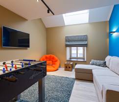 Für Ihre Entspannung sorgen zwei Wellnessbereiche (einer je Ferienhaus) mit jeweils einer Sauna und einem Hammam. Außerdem finden Sie in einem der Ferienhäuser einen Tischkicker, die Garantie für unterhaltsame Stunden.