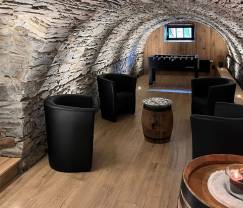 Im gemütlichen und komfortablen Wohnzimmer lässt es sich am Kaminofen wunderbar entspannen. Sie verfügen hier über einen Fernseher, eine Hi-Fi-Anlage, einen DVD-Player sowie Internetanschluss über WLAN und genießen somit allen Komfort.