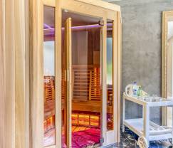 Infrarotkabine (4pers), Doppeldusche mit Multifunktionskopf, Liegestühle