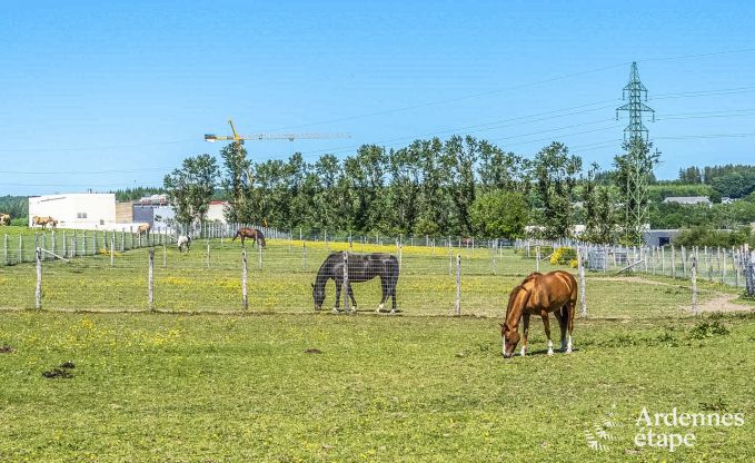 Ferienhaus in den Ardennen, auf einem privaten Anwesen, mit 2 Schlafzimmern und 2 Badezimmern, Wellnessbereich mit eigener Sauna und Whirlpool. Extra: Reitzentrum und Pferdeboxen. Die lichtdurchflutete Raumatmosphäre, die Farben und Materialien erzeugen ein Gefühl von Gelassenheit . Auf diesem wunderschönen privaten Anwesen (das auch ein Reitzentrum ist ) können sich die Kinder auf dem...