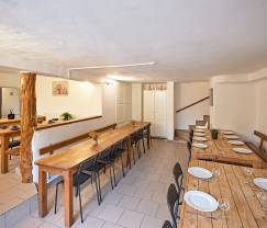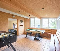 Sober functioneel vakantiehuis zonder extra's (op de sauna na). Keuken en eetkamer zijn op gelijkvloers en jammer genoeg gescheiden van salon/speelruimte op de eerste verdieping, waardoor de groep vaak wordt opgesplitst. Alles is wat verouderd en straalt weinig gezelligheid uit.