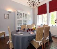 Mit seinen eleganten Möbeln und der gepflegten Innenausstattung bietet das Ferienhaus einen erstklassigen Komfort. Es verfügt über 5 bezaubernde Schlafzimmer, die ansprechend eingerichtet wurden und jeweils ein eigenes Badezimmer besitzen. Auf Ihre morgendliche Dusche brauchen Sie somit niemals zu warten! In diesem Ferienhaus steht Ihnen alles zur Verfügung, was Sie für einen angenehmen Aufenthalt brauchen. Im Erdgeschoss können Sie im freundlichen Wohnbereich gemütlich mit der ganzen Familie zusammensitzen. Die bequemen Sofas im Wohnzimmer laden dazu ein, gemeinsam ein Gläschen zu trinken oder einfach in aller Ruhe bei einem guten Buch zu entspannen. Für gemeinsame Mahlzeiten und unvergessliche Momente bei Tisch bietet das Esszimmer das perfekte Ambiente. In der gut ausgestatteten und sehr funktionellen Küche werden Ihnen Ihre Lieblingsgerichte mit Sicherheit gelingen.