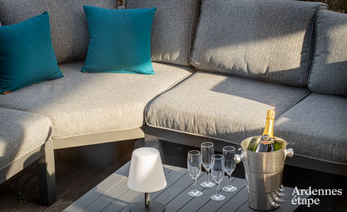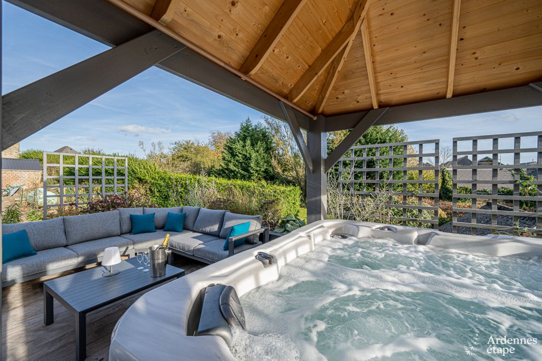 Diese Unterkunft lässt Sie traumhafte Ferien in einer ruhigen und grünen Umgebung verbringen! Dieses gemütliche und einladende Haus ist der ideale Ort, um schöne Momente mit der Familie zu verbringen, eignet sich aber auch hervorragend für ein romantisches Wochenende. Sie werden sofort Lust haben, sich mit einem guten Buch auf das Sofa zu setzen, einen Aperitif zu nehmen oder sich im Wellnessbereich mit Sauna zu entspannen. Der Außenbereich ist ebenso einladend: Genießen Sie die Blasen des Jacuzzis auf der gemütlichen Terrasse, sonnen Sie sich oder setzen Sie sich zu einem köstlichen Grillfest zusammen!