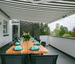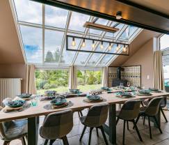 Dieses luxuriöse Ferienhaus bietet Ihnen 5 Schlafzimmer, 3 Bäder (davon 2 privat) und jede Menge Komfort: Whirlpool, Kaminofen, überdachte Terrasse und einen großen Garten.