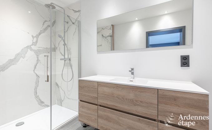 Am Waldrand taucht Sie diese helle und moderne Luxusvilla in die Natur der Ardennen ein. Jacuzzi mit Aussicht? Billardabend? Dreimal ja! Dieses 4-Sterne-Ferienhaus kombiniert eine hervorragende Lage, höchsten Komfort und eine tolle Einrichtung. Hier entlang, zur Besichtigung! Der Wohnbereich ist von Licht durchflutet. Jedes Dekorationselement zeigt, wie viel Sorgfalt die...