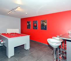 Die Ferienvilla ist mit allem denkbaren Komfort ausgestattet und wird damit den Erwartungen jedes Gastes gerecht. Da wäre beispielsweise ein herrlicher ausladender Innenpool, zu dem Jacuzzi, Infrarotkabine und ein Laufband gehören. Lust auf Entspannung unter den Erwachsenen oder ein gemütliches Beisammensein mit den Kids? Dann ist das große Spielzimmer im Kellergeschoss mit Air Hockey, Darts, Kicker und TV genau der angesagte Ort. Und zum Ausklang des Abends können Sie sich bei einem leckeren Drink an der Bar entspannen. Sie wünschen sich eher Ruhe bei einem guten Buch? Dann freuen Sie sich auf den Lesesaal; der ideale Ort, die letzten Bestseller zu verschlingen. Und schließlich befindet sich unmittelbar neben der Küche noch ein Spielzimmer, in dem die Kleinen sich amüsieren können, während die Eltern in der prachtvollen, vollständig ausgestatteten Küche das Essen zubereiten.
