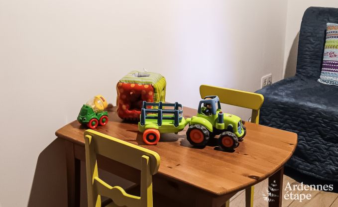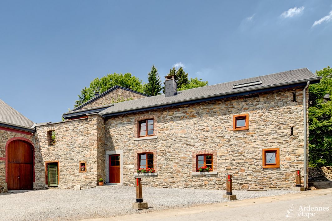 Der ursprüngliche Reiz dieses erst kürzlich renovierten Hauses mit Charakter wurde raffiniert bewahrt, was durch die historischen Steinmauern und freiliegenden Holzbalken in den meisten Räumen zum Ausdruck kommt. Die besten Voraussetzungen für eine gelungene Auszeit in den Ardennen in einer ursprünglichen Atmosphäre. Das Haus bietet zudem eine funktionsorientierte Einrichtung, damit Sie in Ihrem Urlaub mal so richtig abschalten können. Vier bis sechs Personen finden hier eine Unterkunft unter optimalen Bedingungen, mit 2 komfortablen Schlafzimmern und 2 modernen Badezimmern. Sie verfügen über eine genauso reizvolle wie gut ausgestattete Küche mit allen Annehmlichkeiten, damit Ihnen Ihre Lieblingsgerichte im Handumdrehen gelingen. Anschließend findet sich die ganze Familie zu einer leckeren Mahlzeit in der rustikalen und einladenden Atmosphäre des Esszimmers zusammen. Gleich nebenan finden Sie ein gemütliches Wohnzimmer mit einem Schlafsofa für 2 Personen. Im Sommer können Sie auf Ihrer traumhaften Terrasse ein Frühstück oder einen Grillabend mit der Familie genießen.