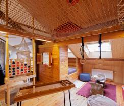 Het vakantiehuis is knap ingericht voor gezinnen met kinderen; een speelhoek om te klimmen, te hangen, spelletjes te spelen, een boekje te lezen. Het tweepersoonsbed voor de kinderen ligt tevens in een gezellige nis, naast de houten speelruimte. Het huis is praktisch ingericht waarbij alles aanwezig is om je thuis te voelen. Het balkon is een fijne plek om te vertoeven en een koffietje te drinken. De prachtige tuin biedt rust, stilte en gezelligheid. Een ideale locatie voor natuurliefhebber!