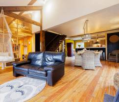Das Haus verfügt über drei Schlafzimmer und drei Badezimmer, damit jeder ausreichend Privatsphäre hat. Im Wohnzimmer gibt es auch ein zusätzliches Alkovenbett für 2 Personen. Das gemütliche Wohnzimmer lädt zu entspannten Abenden am Kamin ein. Die Küche ist voll ausgestattet, damit Sie problemlos eine köstliche Mahlzeit zubereiten können. Außerdem gibt es einen Spielraum mit Gesellschaftsspielen, ideal für Familienspaß. Und für die Kinder gibt es eine besondere Überraschung: ein Hängenetz zwischen dem ersten Stock und dem Erdgeschoss, in dem sie nach Herzenslust spielen können.