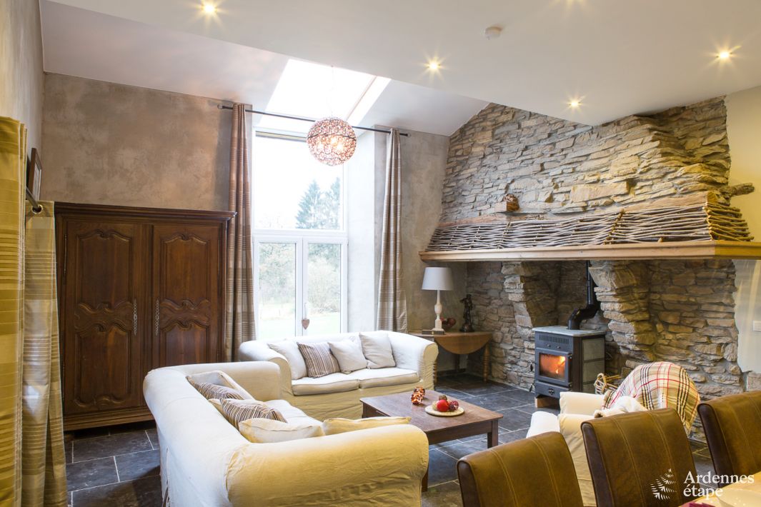 Dieses ehemalige Bauernhaus in Vaux-Chavanne nahe Manhay in der Provinz Luxemburg wurde zu einem luxuriösen und komfortablen Ferienhaus für 9 Personen umgebaut. Bei Ihrer Ankunft wird Ihnen gleich die perfekte Kombination aus authentischen Elementen (Steinmauern und freiliegende Holzbalken) und luxuriösen Materialien auffallen, welche diesem Ferienhaus eine einzigartige Ausstrahlung verleiht. Der Wellnessbereich mit Infrarot-Kabine und Whirlpool für 2 Personen wird Ihnen sicher gefallen. Ein besonderes Schmuckstück ist der Hobbyraum mit Billardtisch, der unter einem prächtigen Steingewölbe im Keller eingerichtet wurde. Das geräumige Wohnzimmer mit seinen bequemen Sofas und dem Holzofen ist ein wunderbarer Ort, um gemeinsam den Abend zu verbringen. Außerdem stehen Ihnen in diesem Ferienhaus eine WLAN-Internetverbindung und ein Fernseher zur Verfügung. Vom bezaubernden Esszimmer aus gelangen Sie in die moderne und sehr gut ausgestattete Küche mit Induktionskochfeld, Backofen, Mikrowelle, amerikanischem Kühlschrank und Geschirrspüler. Sämtliche Küchengeräte sind vorhanden, vom Wasserkocher über dieSenseo-Kaffeemaschine bis hin zum Toaster und zum Suppenmixer. Das Ferienhaus hat 5 Schlafzimmer, von denen zwei über ein eigenes Badezimmer mit Dusche und Waschbecken verfügen. Im großen Gemeinschaftsbad befindet sich eine Badewanne, in der es sich abends wunderbar entspannen lässt. Auch ein Babybett und ein Babystuhl sind in einem der Schlafzimmer vorhanden. Im Sommer können Sie auf der mit Gartenmöbeln und Sonnenschirm ausgestatteten Terrasse die Sonnen genießen. Dort gibt es auch einen Grill für gemütliche Abende im Familienkreis.