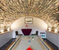 Dieses ehemalige Bauernhaus in Vaux-Chavanne nahe Manhay in der Provinz Luxemburg wurde zu einem luxuriösen und komfortablen Ferienhaus für 9 Personen umgebaut. Bei Ihrer Ankunft wird Ihnen gleich die perfekte Kombination aus authentischen Elementen (Steinmauern und freiliegende Holzbalken) und luxuriösen Materialien auffallen, welche diesem Ferienhaus eine einzigartige Ausstrahlung verleiht. Der Wellnessbereich mit Infrarot-Kabine und Whirlpool für 2 Personen wird Ihnen sicher gefallen. Ein besonderes Schmuckstück ist der Hobbyraum mit Billardtisch, der unter einem prächtigen Steingewölbe im Keller eingerichtet wurde. Das geräumige Wohnzimmer mit seinen bequemen Sofas und dem Holzofen ist ein wunderbarer Ort, um gemeinsam den Abend zu verbringen. Außerdem stehen Ihnen in diesem Ferienhaus eine WLAN-Internetverbindung und ein Fernseher zur Verfügung. Vom bezaubernden Esszimmer aus gelangen Sie in die moderne und sehr gut ausgestattete Küche mit Induktionskochfeld, Backofen, Mikrowelle, amerikanischem Kühlschrank und Geschirrspüler. Sämtliche Küchengeräte sind vorhanden, vom Wasserkocher über dieSenseo-Kaffeemaschine bis hin zum Toaster und zum Suppenmixer. Das Ferienhaus hat 5 Schlafzimmer, von denen zwei über ein eigenes Badezimmer mit Dusche und Waschbecken verfügen. Im großen Gemeinschaftsbad befindet sich eine Badewanne, in der es sich abends wunderbar entspannen lässt. Auch ein Babybett und ein Babystuhl sind in einem der Schlafzimmer vorhanden. Im Sommer können Sie auf der mit Gartenmöbeln und Sonnenschirm ausgestatteten Terrasse die Sonnen genießen. Dort gibt es auch einen Grill für gemütliche Abende im Familienkreis.