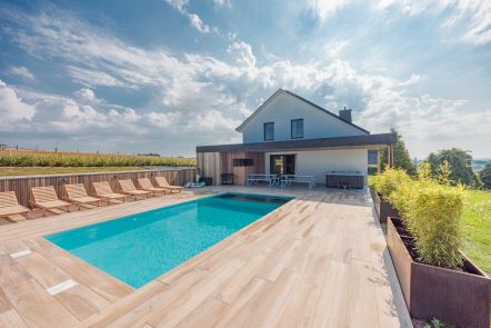 Diese Luxusvilla in Manhay bietet alles, was es für einen gelungenen Aufenthalt braucht – und das in einer der schönsten Regionen der Ardennen. Im schönen Garten mit Swimmingpool, überdachter Terrasse und Grill sowie im Wellnessbereich mit Whirlpool und Infrarot-Kabine lässt es sich wunderbar entspannen. Das Wohnzimmer wiederum lädt zu gemütlichen Abenden am Kaminfeuer (Einbaukamin) ein. Die Hobbyköche unter Ihnen werden beim Anblick der perfekt ausgestatteten Küche in Verzückung geraten und mit Vergnügen ihre Kreationen im großen Esszimmer servieren. Dank der auf den Garten hinausgehenden Fenster profitiert dieser Raum von großzügigem Lichteinfall. Zu guter Letzt gibt es einen Hobbyraum mit Tischtennisplatte und verschiedenen Spielen – viele vergnügliche Stunden sind garantiert!