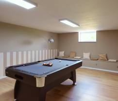 Die Villa verfügt über mehrere Spielräume, insgesamt drei, in denen Jung und Alt sich mit allerlei Gesellschaftsspielen, einem Billardtisch und einem Tischfußballspiel vergnügen können. Außerdem gibt es eine gemütliche Bar und einen großzügigen Loungebereich, in dem Sie gemeinsam ein Getränk oder ein gutes Gespräch genießen können.