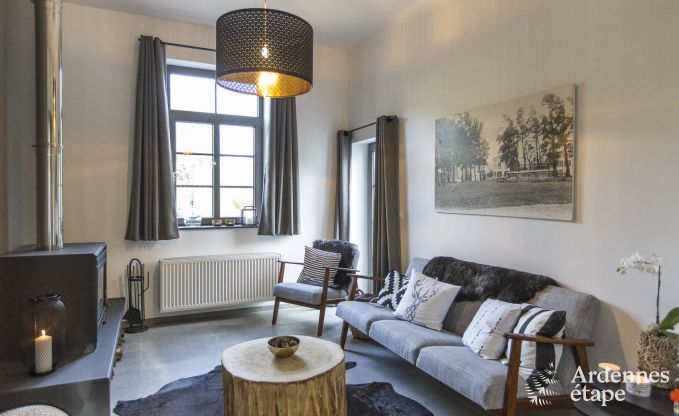 Die Eigentümer sind dem Charme dieses alten Schrankenwärterhauses verfallen und haben sofort die Möglichkeit erkannt, es zu renovieren und zu einem Ferienhaus mit 3-Sterne-Komfort für eine kleine Familie mit 4 Personen umzubauen.  Ein gelungenes Unterfangen: hochwertige Möblierung, gepflegte Inneneinrichtung in schwarz-weiß, ganz wie die alten Fotografien und Stiche an den Wänden.