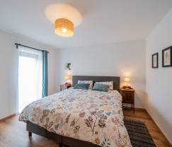 Gelegen in een klein dorp, prachtig uitzicht vanuit de leefruimte en terras . Moderne warme inrichting , goede douche , goed bed . Efkes probleem met tv maar de vriendelijke gastheer kwam dit vlug oplossen.Gefietst en gewandeld met Komoot app , overal rustige weggetjes.