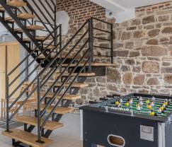 Ihr Aufenthalt wird durch ein stimmungsvolles und helles Ambiente untermalt. Das sorgfältig renovierte Haus weist noch authentische Elemente wie Backstein und Holz auf, die ihm ein besonderes Flair verleihen. Lust zu spielen? Kleine und große Kinder werden sich über die Spielmöglichkeiten draußen und drinnen freuen: Schaukel, Boule, Badminton und Kicker. Der große Garten wird mit den vier weiteren Ferienhäusern des Anwesens gemeinsam genutzt … perfekt, um Freunde zu finden! Abgesehen von diesem Garten sind alle Ferienhäuser völlig unabhängig voneinander. So verfügen Sie über Ihre private Terrasse mit einem Whirlpool, in dem Sie sich nach einem Tag an der frischen Luft entspannen können. Nachts kann jeder in den fünf Schlafzimmern seine wohlverdiente Ruhe finden, so wie man es von einem Urlaub auf dem Land erwartet!