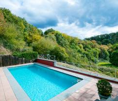 In diesem traumhaft gelegenen Ferienhaus aus regionalem Naturstein können Sie so richtig abschalten. Den Anfang macht ein großer Wohnbereich mit gemütlichem Ambiente, der herrliche Kaminabende verspricht. Weiter geht‘s mit den hellen und gemütlichen Schlafzimmern. Und den Abschluss bilden die tollen Einrichtungen für Ihre Freizeitgestaltung. Das Ferienhaus verfügt nämlich über eine Infrarotsauna, Air Hockey und einen herrlichen Außenpool mit einem atemberaubenden Blick auf die umliegende Landschaft.