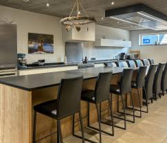 Heel fijn! Keuken was helemaal ingericht voor zoveel personen, zwembad, sauna en jacuzzi waren heel goed onderhouden en aangenaam in gebruik. We waren wat verrast dat het huis in de voortuin van de boerderij stond, waardoor we weinig of geen zicht naar buiten hadden vanuit het huis, dus het oogde vanbinnen donker. Het terras was overdekt wat aangenaam was, maar er was weinig zicht naar de tuin toe.