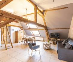 Dieser Ort verspricht die nötige Ruhe, um mit der Familie seine Batterien wieder aufzuladen. Sie können die Atmosphäre des Ortes in aller Ruhe genießen, während die Kinder sich auf dem riesigen Spielplatz austoben. Natürlich haben sie auch Gelegenheit das Leben auf dem Bauernhof kennenzulernen, der landwirtschaftliche Betrieb ist das ganze Jahr über aktiv. Zudem steht ein Freizeitraum zur gemeinsamen Nutzung mit dem Nachbarferienhaus zur Verfügung, sowie ein Wellnessbereich mit Sauna und Fitnessgeräten. Sie haben zwei Zimmer. Der Wohnbereich ist schön groß und sorgt mit seinen sichtbaren Deckenbalken und den eleganten Holzmöbeln für ein warmes Ambiente. Ob bei Häppchen im Wohnzimmer oder am üppig gedeckten Tisch im Essbereich, hier stehen schöne, gesellige Momente auf dem Programm. Dazu verfügen Sie im Übrigen über eine voll ausgestattete Küche, in der die Verpflegung der ganzen Familie leicht von der Hand geht. Beim Grillen am Steingrill oder am erfrischenden Swimmingpool wird das Sommerglück erst richtig perfekt.
