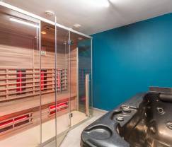 Im Obergeschoss befinden sich 2 komfortable Zimmer, jeweils mit einem eigenen Badezimmer. Vor allem Paare werden diesen Komfort, der einem Hotel in nichts nachsteht, zu schätzen wissen. Der einladende Wellnessbereich mit Infrarotkabine und Jacuzzi verleiht Ihrem Urlaub einen besonderen Touch von Luxus und wurde direkt neben den Zimmern eingerichtet. Es lebe das Farniente!