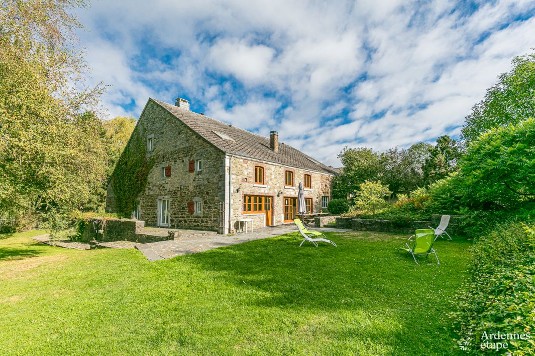 Authentische Steinmauern außen, rustikaler Parkettboden , der herrlich knarrt und Original-Holzbalken innen... Atmosphäre und Komfort sind für Sie sehr wichtig? Dann liegen Sie hiermit genau richtig! Diese geräumige Gruppenunterkunft (5 Schlafzimmer, 3 Bäder) hat nicht nur das gewisse Etwas, sondern ist auch ideal für einen erholsamen Urlaub mit Freunden oder der Familie. Die Kinder werden von dem besonders großen Garten mit Baumbestand begeistert sein, in dem sie Verstecken spielen können. In einem Punkt sind wir uns sicher: Der kleine Bach, der sich sanft durch diese grüne Oase schlängelt, wird garantiert für Entspannung sorgen!