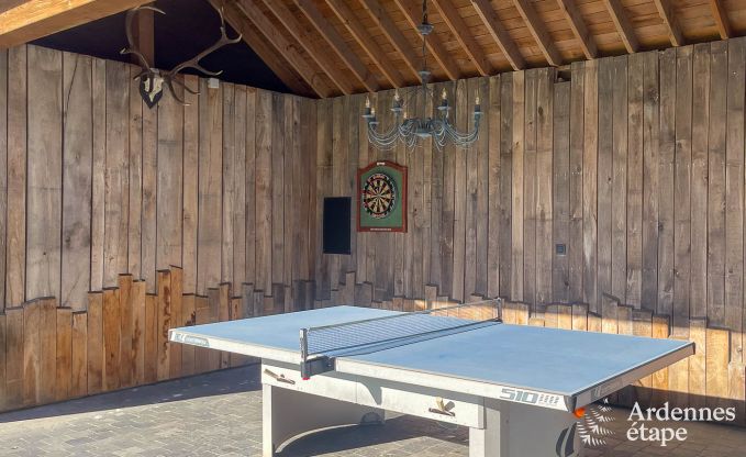 Die sorgfältig ausgewählten Dekorationselemente, das allgegenwärtige Holz und die erdigen Töne schaffen ein harmonisches Gesamtbild, das der Umgebung der Ardennen voll und ganz gerecht wird. Und lässt Sie gleich nach Ihrer Ankunft in den Urlaubsmodus schalten! Machen Sie es sich am Einbaukamin gemütlich, genießen Sie die Wärme der Sauna oder die traumhafte Aussicht im Außenwhirlpool. Auch Ihr vierbeiniger Freund wird diese grüne Oase zu schätzen wissen: Dank des Umzäunung kann er nach Herzenslust herumtollen!