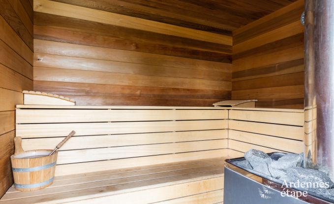 In dieser luxuriösen 4-Sterne-Villa (4 Schlafzimmer, 3 Bäder) sind Sie mitten in einer grünen Oase und können Ihre eigene Sauna und Ihren privaten Whirlpool ganz für sich allein genießen. Die sorgfältig ausgewählten Dekorationselemente, das allgegenwärtige Holz und die erdigen Töne schaffen ein harmonisches Gesamtbild, das der Umgebung der Ardennen voll und ganz gerecht wird. Und lässt Sie...