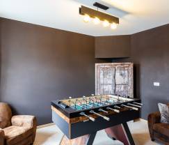 Dieses geräumige Ferienhaus ist der ideale Ort, um alles zu vergessen. Kuscheln Sie sich in einen der einladenden Chesterfield-Sessel in der Nähe des knisternden Feuers, genießen Sie ein ruhiges Gespräch oder decken Sie den langen Esstisch für ein gemütliches Brunch. Auch draußen ist es herrlich! Lounge am Pool, um etwas zusätzliches Vitamin D zu tanken, während Ihr treuer Vierbeiner ein Nickerchen im Schatten der überdachten Terrasse macht und die Kinder im Pool toben. Wer gerne regionale Produkte auf dem Grill zubereitet, kann ein Auge auf den Pool werfen. So ist niemand jemals weit weg, gemütlich!