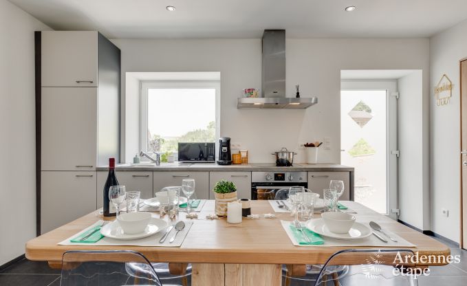 Ein eindrucksvolles Haus mit viel Tageslicht, mit Geschmack dekoriert und hier und da mit Akzenten, die eine gewisse Poesie inspirieren. Die perfekte Adresse für eine erholsame Auszeit! Das Ferienhaus gehört zu einem Bauernhof mit mehreren Unterkünften. Sie werden begeistert sein von dieser Ruheoase mit raffiniert und unaufdringlich eingerichteten Schlafzimmern, einem reizvollen Wellnessbereich, einem wunderbaren Wohnzimmer in Pastellfarben und einer privaten Terrasse mit Zugang zum Gemeinschaftsgarten.