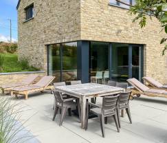 Bei diesem großen, modernen Ferienhaus jagt ein Highlight das andere: eine Infrarotsauna und ein Whirlpool, in denen Sie sich entspannen können, wann immer Ihnen danach ist (eine Wonne im Winter oder nach einem langen Spaziergang), ein Fernsehzimmer im Zwischengeschoss, wo Sie in aller Ruhe Ihre Lieblingsserie schauen können (oder die Kinder ihre Zeichentrickfilme, ohne Sie zu stören), 3 hübsche Schlafzimmer mit einem traumhaften Blick auf die umliegende Landschaft und ein geräumiges und hübsch eingerichtetes Wohnzimmer. Draußen sind die große Terrasse und der weitläufige Garten einfach perfekt für einen Grillabend, endlose Aperitifs, ein Fußballspiel - oder was auch immer Sie wollen.