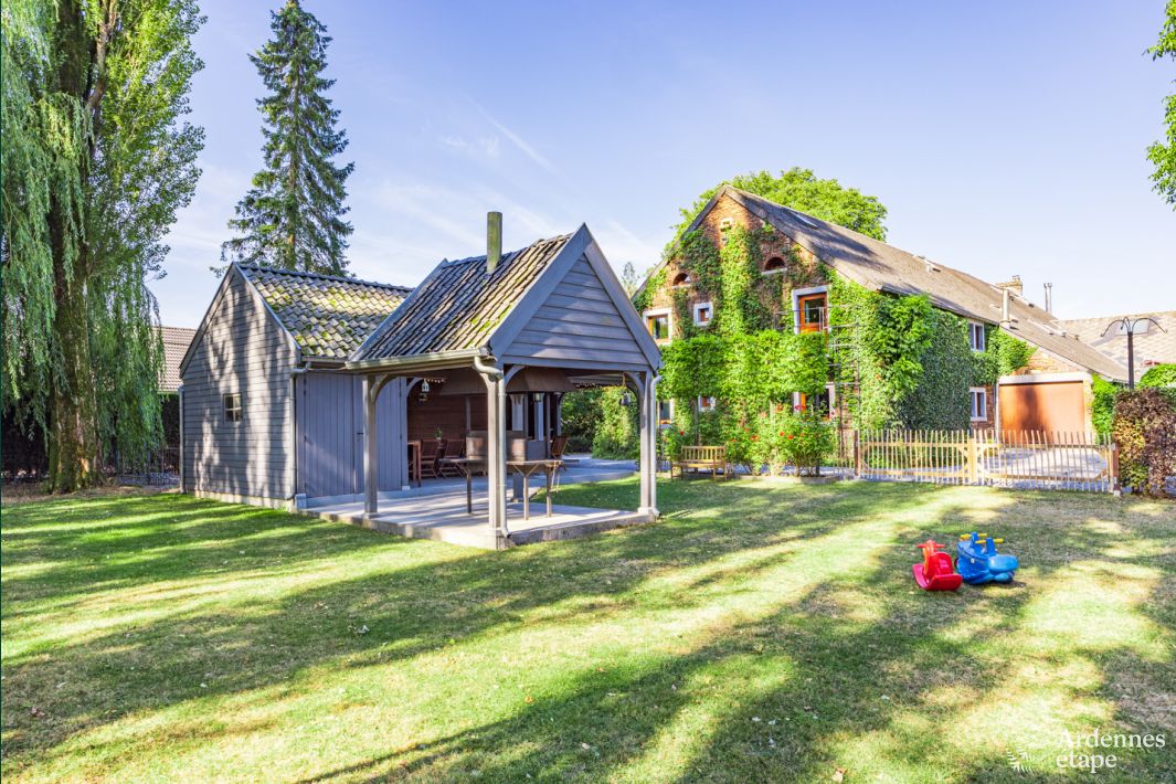 Die am Ende eines Weilers der Gemeinde Ohey gelegene Wohnung garantiert Ihnen einen Aufenthalt in ruhiger Umgebung. Hier fließt ein rustikaler Stil mit freiliegenden Holzbalken und Holzmöbeln raffiniert zusammen mit Design-Elementen mit modernen Farben und Materialien, wie Metall und Leder, wodurch eine überaus einladende Atmosphäre entsteht. Dieses Ferienhaus umfasst 5 geräumige Schlafzimmer, davon 4 im Erdgeschoss, wo sich auch die Küche und das Esszimmer befinden. Das 5. Schlafzimmer erwartet Sie im Obergeschoss und führt Sie ins Wohnzimmer im Zwischengeschoss. Und schließlich verfügen Sie über 2 separate Badezimmer. Das Wohnzimmer bietet Ihnen die folgenden Ausstattungen: Fernseher, DVD, Kabelfernsehen, Nintendo Wii-Spielkonsole, Tischkicker und WLAN. In der schönen Jahreszeit laden die Terrasse der Wohnung und der Gemeinschaftsgarten zu Momenten erholsamer Farniente ein. Hier können Sie gemütliche Momente mit Ihren Liebsten verbringen und beispielsweise einen Grillabend organisieren. Das auf einer Seite an ein anderes Haus angrenzende Ferienhaus bietet ein komplett umzäuntes Grundstück mit Kinderspielzeug und privatem Parkplatz. Der perfekte Ort für einen Wochenendausflug oder einen längeren Familienurlaub!