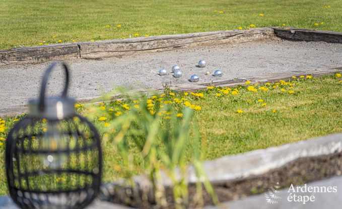 Brauchen Sie einen Tapetenwechsel? Dieses hübsche Ferienhaus befindet sich in einer Sackgasse, auf dem Land in Ouffet. Eine Umgebung, wie sie erholsamer nicht sein könnte , um neue Energie zu tanken! Das geräumige Ferienhaus besteht aus 5 schönen Schlafzimmern , in denen es sich bestens ausschlafen lässt, und 2 großen Badezimmern. Die äußerst gemütlichen Wohnbereiche mit Kaminofen sind der ideale Ort für einen langen Spieleabend oder einen leckeren Brunch. Im Außenbereich gibt es eine wunderschöne Veranda mit Pool, einen Whirlpool mit traumhaftem Blick auf die grüne Umgebung und Ihren eigenen Bouleplatz.