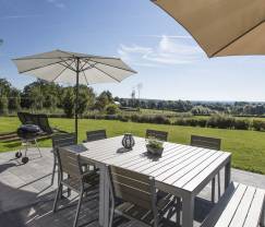 Die Kinder werden in dem großen privaten Garten des Ferienhauses, der mit einem Trampolin und einer Rutsche aufwartet, ihren Spaß haben. Von der weitläufigen Terrasse haben Sie ein Auge auf Sie, während Sie gemütlich auf den dort befindlichen Gartenmöbeln den Aperitif genießen.