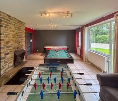 Mit den geräumigen Innenbereichen, dem großen Grundstück und der hochwertigen Ausstattung bietet dieses Haus Platz für 36 Personen in erstklassigem Komfort. Sie verfügen über 14 angenehme, geschmackvoll eingerichtete Schlafzimmer, von denen die meisten mit einem privaten Badezimmer ausgestattet sind. Momente der Geselligkeit versprechen die zahlreichen Gemeinschaftsbereiche mit gepflegter und gemütlicher Einrichtung. Dazu gehört vor allem das Wohnzimmer mit bequemen Sesseln für ein abendliches Aperitif oder erholsame Lesestunden, aber auch mit einem Billardtisch und einem Tischkicker. Die Mahlzeiten sind ein ganz besonderes Ereignis in dem prachtvollen Esszimmer mit gemütlicher Atmosphäre. In der Küche fehlt es Ihnen an nichts für die Zubereitung leckerer Rezepte für die ganze Familie dank der umfassenden Ausstattung und der funktionsorientierten Einrichtung. Ruhe und Erholung verspricht der Wellnessbereich mit Sauna, und die Außenbereiche bieten vielfältige Freizeitmöglichkeiten, beispielsweise mit Spielen für die jüngsten Gäste oder einem Grill für leckere Mahlzeiten mit der Familie an der frischen Luft.