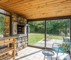 Die 8 komfortablen und schön eingerichteten Zimmer dieses geräumigen Ferienhauses bieten bequem Platz für 16 Personen. Es fehlt an nichts für einen unvergesslichen Urlaub, angesichts des optimalen Komforts und der hochwertigen Ausstattung dieses Ferienhauses. Nach langen Wanderungen durch den Wald oder auf den Skipisten erwarten Sie entspannte Momente in der Sauna. Die Kinder werden den Spielsaal in Beschlag nehmen, wo sie ein Kickertisch erwartet. Draußen haben sie den großen privaten Garten mit Rutsche und Schaukel ganz für sich. Dem Wohnbereich mit einem großen Speisesaal mangelt es nicht an Charme. Hier ist der Ort ihrer gemeinsamen Mahlzeiten. Die Wohnzimmerecke mit komfortablen Sesseln, offenem Kamin und Bruchsteinwand besticht mit einem besonders einladenden Ambiente. Was das Praktische betrifft, steht Ihnen eine herrliche, voll ausgestattete Küche zur Verfügung, ein Traum für die Hobbyköche unter Ihnen!