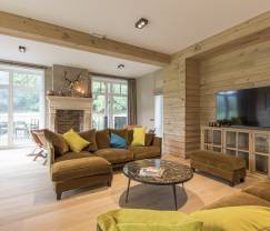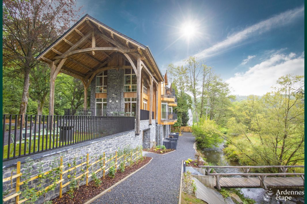 Dieses sehr schöne 4,5-Sterne-Ferienhaus in sehr ruhiger Waldlage ist ideal für einen Urlaub im Zeichen von Natur und Erholung. Das zugleich modern und einladend eingerichtete Haus ist in drei Ebenen unterteilt. Die erste ist dem Wellness und der Freizeit gewidmet und umfasst einen Billardtisch, ein Jacuzzi, eine Infrarotkabine sowie ein Doppelzimmer (zwei Einzelbetten) mit Fernseher und Badezimmer. Die zweite umfasst den weitläufigen Gemeinschaftsbereich mit Wohnzimmer, Esszimmer und einer voll ausgestatteten Einbauküche. Wie im ganzen Haus sorgen auch hier große Fensterfronten für viel Licht und einen schönen Ausblick auf den Bach, der draußen friedlich plätschert. Die dritte Ebene enthält den Schlafbereich mit fünf Doppelzimmern, alle mit Fernseher und drei mit eigenem Badezimmer, sowie ein weiteres Badezimmer mit Dusche. Dieses zugleich moderne und elegante Ferienhaus ist neueren Baujahrs und von einem 600 m² großen Garten umgeben. Zudem verfügen Sie über eine 28 m² große, möblierte Terrasse, eine Boulebahn und einen Parkplatz für acht Fahrzeuge.