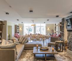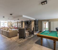 Der Wohnbereich ist sehr geräumig und ohne Trennwände, aber in mehrere Bereiche unterteilt. Hier finden Sie zwei Sitzecken (davon eine mit Kamin), zwei Essecken und einen Billardtisch.