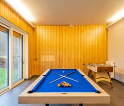 Hier erwarten Sie 8 überaus gemütliche Schlafzimmer und 7 Badezimmer, 2 Babybetten, 1 Wickelauflage, 1 Laufstall und 2 Kinderstühle. Die eindrucksvollen, modern eingerichteten Wohnbereiche der Villa laden Sie ein zu wohligen Momenten der Entspannung. Sie verfügen über 2 Wohnzimmer, das eine mit Einbaukamin und das andere mit Kaminofen, einen Unterhaltungsraum mit amerikanischem Billardtisch und Tischkicker, einen Wellnessbereich mit Sauna für 6 Personen und einen herrlichen Indoor-Pool (8 x 4 x 1,5 m), der ganzjährig auf 28 °C beheizt ist. Für Ihre Business-Events verfügen Sie über einen perfekt ausgestatteten Konferenz-/Seminar-/Projektionsraum mit Bar, Kühlschrank und Kaminofen. Die moderne Küche ist sehr gut ausgestattet: Induktionsherd mit 5 Kochstellen, 2 Backöfen, Mikrowelle, 2 Kühlschränke mit Gefrierschrank, 2 Geschirrspüler, 2 Nespresso-Kaffeemaschinen, Filterkaffeemaschine, elektrischer Wasserkocher, Toaster, Suppenmixer und Obstpresse. Außerdem verfügen Sie über einen Staubsauger und eine Waschmaschine.