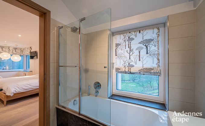 Die einladende 5-Sterne-Villa in der Provinz Luxemburg, in einem Weiler am Rande eines Waldes und eines Flusses bietet luxuriösen Komfort für bis zu 18 Personen. Darüber hinaus verfügt die Villa über einen ebenerdigen Zugang und einen Aufzug für Personen mit eingeschränkter Mobilität.