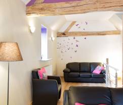 Schon beim Betreten des kleinen Ferienhauses werden Sie von der Ursprünglichkeit und dem Charme dieses außergewöhnlichen Objektes verzaubert sein. Die vier wunderschönen und äußerst gelungen eingerichteten Schlafzimmer bieten Platz für 9 Personen. Zwei der 4 Schlafzimmer bieten sogar ein eigenes Badezimmer, und ein drittes Bad ist mit einem Whirlpool ausgestattet. Im ersten Stock findet sich außerdem eine Sitz- und Leseecke, ein idealer Ort zum Entspannen und um in aller Ruhe in Ihr Buch einzutauchen. Im Untergeschoss der Ferienunterkunft befindet sich das Wohnzimmer mit einem gemütlichen Esszimmer und der komplett ausgestatteten und modernen Küche. Der Außenbereich überzeugt mit einer charmanten Terrasse mit hübschem Gartenmobiliar sowie einem Grill, damit Sie das schöne Wetter und die ländliche Atmosphäre dieses kleinen Dörfchens genießen können.