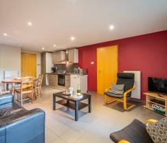 Nutzen Sie dieses wunderschöne Ferienhaus im Herzen des Ardenner Landes für ein Familientreffen in gemütlicher und malerischer Umgebung. Mit fünf schlicht und elegant eingerichteten Zimmern, alle mit eigenem Badezimmer, zwei Sitzecken und zwei Einbauküchen bietet es einen Komfort, den Sie für einen angenehmen und entspannten Aufenthalt benötigen. Die Aufteilung in zwei getrennte Unterkünfte lässt Ihnen auch die Wahl, sich in kleinerem Kreise zusammen zu finden. Der 1000 m² große Garten zur gemeinsamen Nutzung mit Schaukel, Sandkasten, Trampolin und Boulebahn ist ein wahrer Abenteuerpielplatz für die Kinder. Dazu kommt der Landwirtschaftsbetrieb des Nachbarn, wo sie die Tiere des Bauernhofs kennenlernen können.