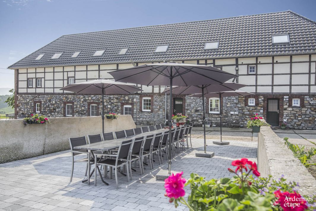 In het Heuvelland grenzend aan Nederlands Limburg met een geweldig uitzicht een zeer mooi gerestaureerde deels vakwerk vakantiewoning als onderdeel van een melkboerderij. Gezellige indeling en mooie slaapkamers/badkamers.